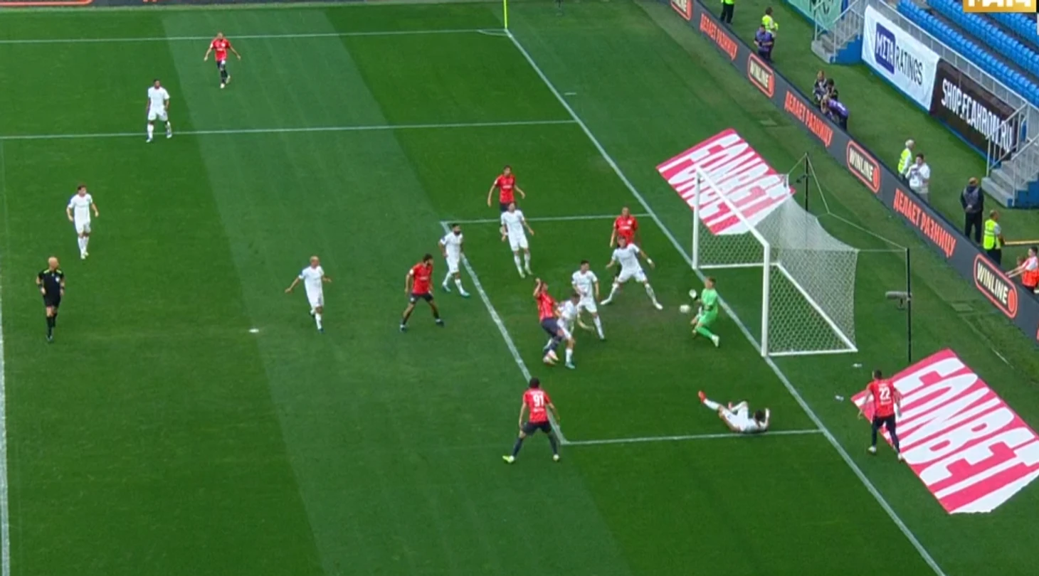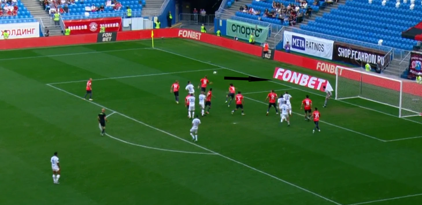 При этом атакующая игра «Акрона» работала. Да, уральцы грамотно оборонялись, перестраиваясь в 4-1-4-1 или 5-4-1, но прострелы и удары позволяли сопернику зарабатывать угловые. Уже на 9-й минуте возник первый по-настоящему голевой момент, когда Дзюба скидывал на забегающего Лончара, и тот чудом не попал в пустые ворота.