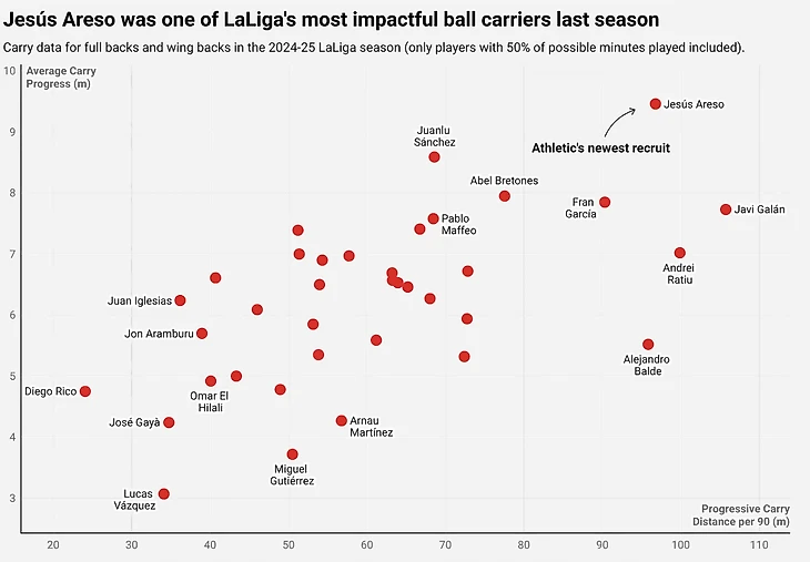 Аресо отлично вписывается в эту модель. Он — один из самых активных крайних защитников прошлого сезона в Ла Лиге: