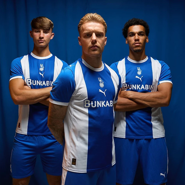 Она выполнена в чистом королевском синем цвете, дополненном золотыми деталями логотипов и юбилейной эмблемой клуба с датой 1875-2025.