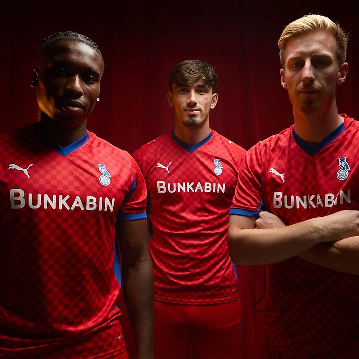 Яркий красный дизайн выездной формы отсылает к его корням и воспроизводит оригинальные цвета команды «Пайн Вилла», которая в 1895 году стала «Олдхэм Атлетик», и отличается V-образным вырезом, логотипом Puma на правой стороне груди и плечах, а также синими боковыми панелями и отделкой.