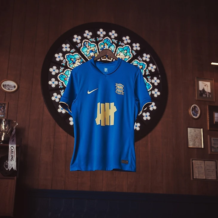 Домашняя футболка «Бирмингема» отличается простым и минималистичным дизайном, возвращающим к истокам классической футбольной эстетики.