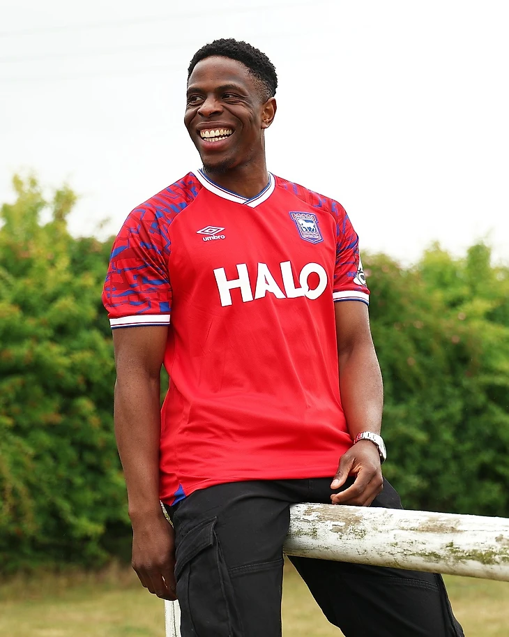 На синей домашней футболке «Ипсвича» спереди и сзади расположен узор, представляющий собой деконструированную версию современной эмблемы клуба, что символизирует 30-ю годовщину ее создания в 1995 году.