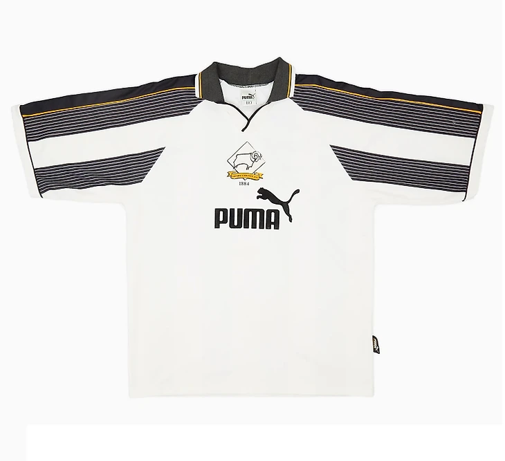 Домашняя футболка «Дерби» переосмысливает оригинальный дизайн формы исторического сезона 1995/96, в котором команда выиграла повышение в Премьер-лигу под руководством легендарного тренера Джима Смита.