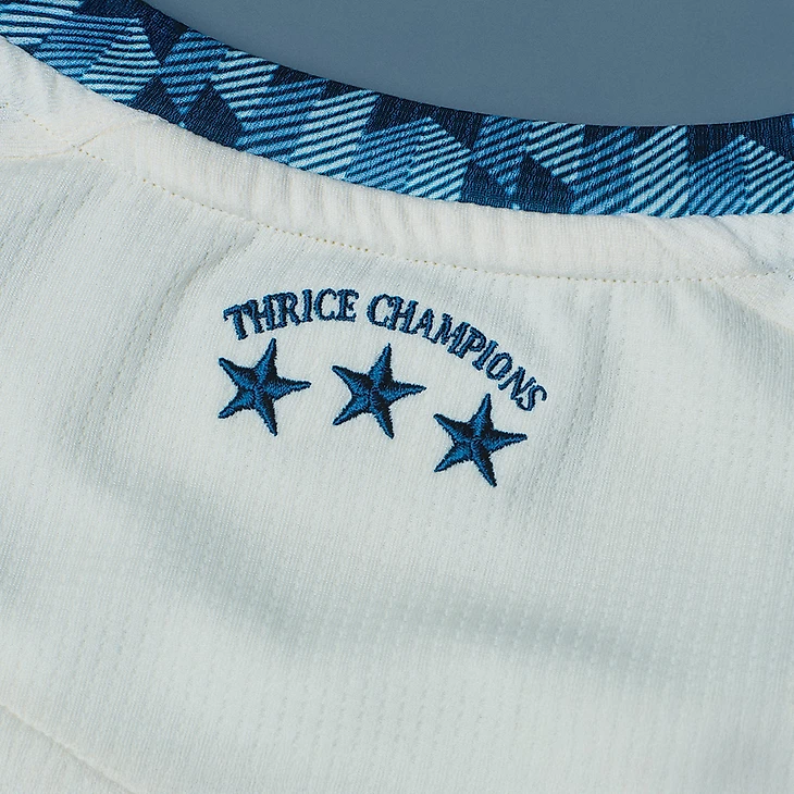 В честь этого на всех трех новых комплектах на внутренней стороне воротника размещены три трофейных изображения и золотая окантовка, отражающие исторические титулы клуба в Первом дивизионе в сезонах 1923/24, 1924/25 и 1925/26, а сзади на шее — надпись «Трижды чемпион» и три золотые звезды.