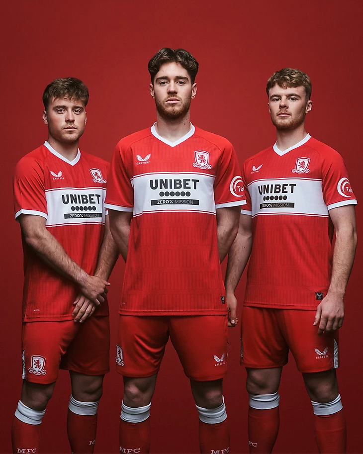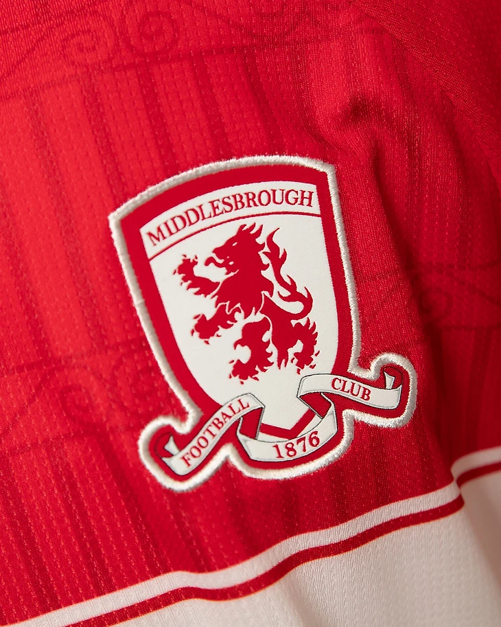 Домашняя футболка «боро» украшена фирменной белой нагрудной полосой клуба на красном фоне. Уникальной особенностью является тонкий узор в красных секциях, вдохновленный дизайном знаменитых ворот стадиона «Эйрсом Парк».