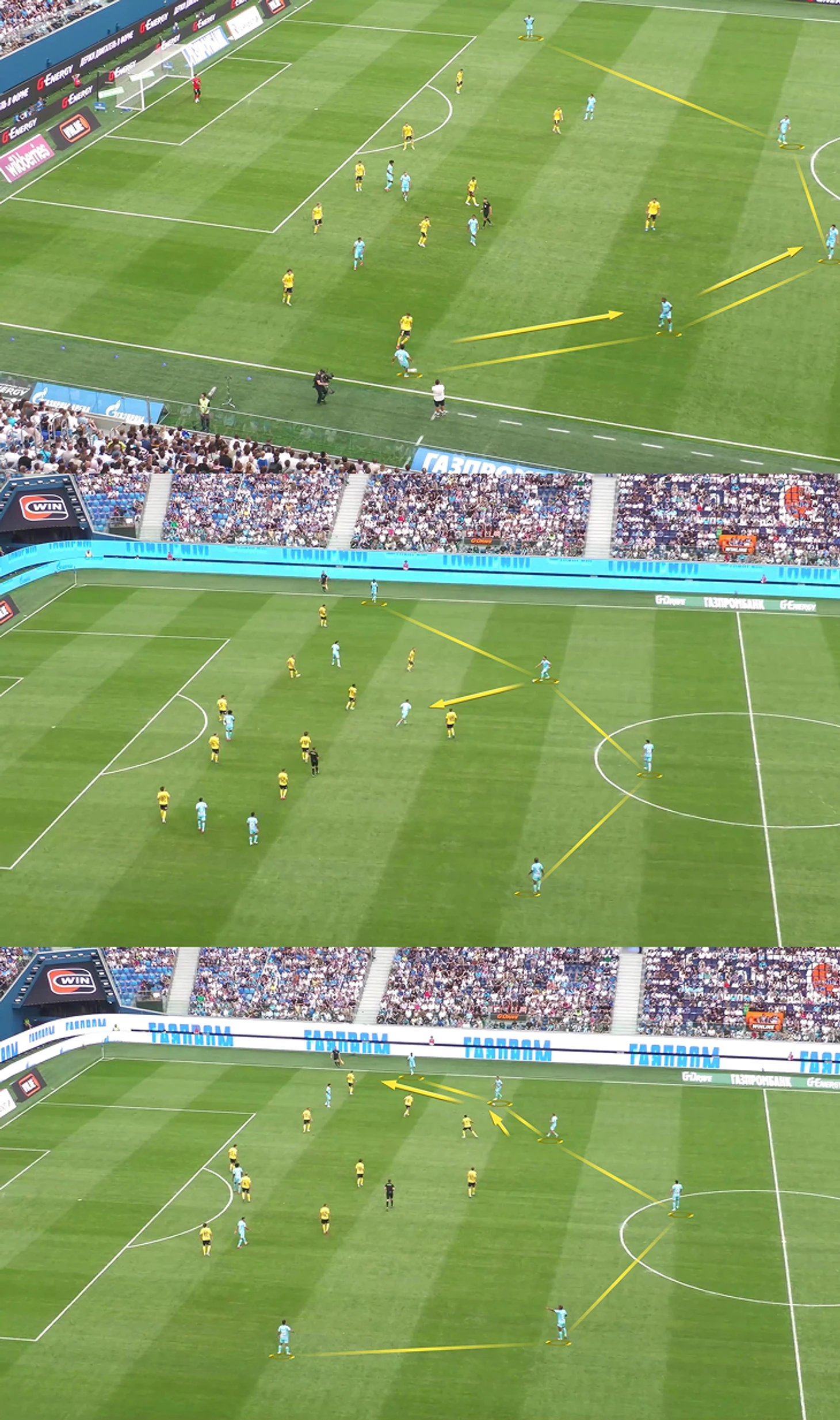 «Позиционные атаки «Зенита» строятся через передачи центральных защитников справа – налево и слева – направо, – объяснял Спортсу’’ тренер Роман Шаронов. – Они не используют проникающие пасы на опорников или игроков между линиями. «Зенит» замедляется из-за переката мяча с одного фланга на другой».