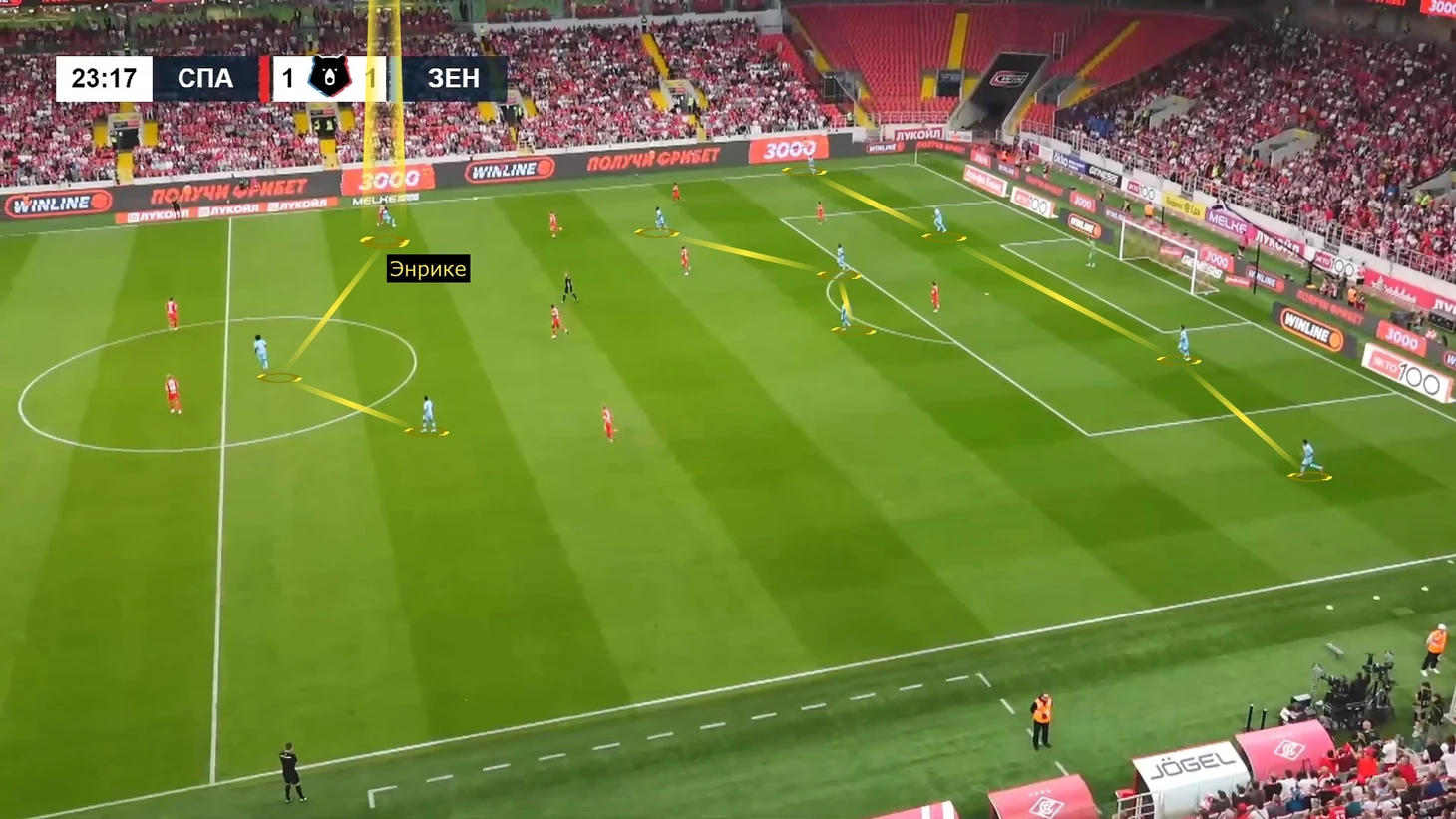 Семак списывал неудачи Энрике на плохую форму из-за повреждения. Но установки тренера жестко усредняют Луиса: структура выхода из-под прессинга и позиционных атак вынуждают вингера биться за забросы вместо участия в скоростных прорывах. С оборонительным вкладом тоже проблемы – Энрике явно недоработал в сдерживании Эсекиэля Барко при первом пропущенном.
