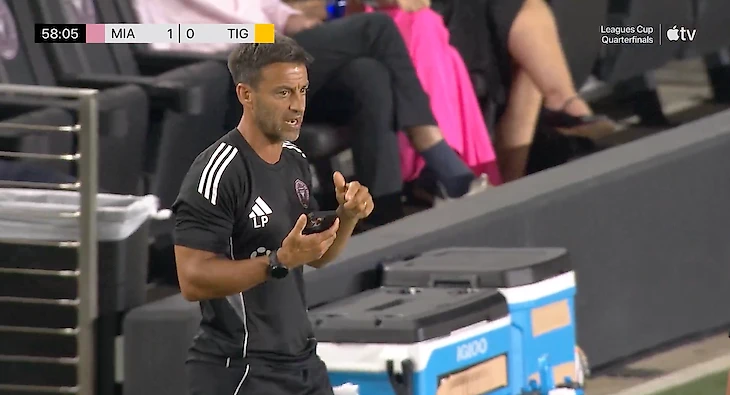 Весь второй тайм «Интер Майами» провел без Хавьера Маскерано на тренерской скамейке. Аргентинцу показали красную карточку, но он почему-то расположился совсем рядом.