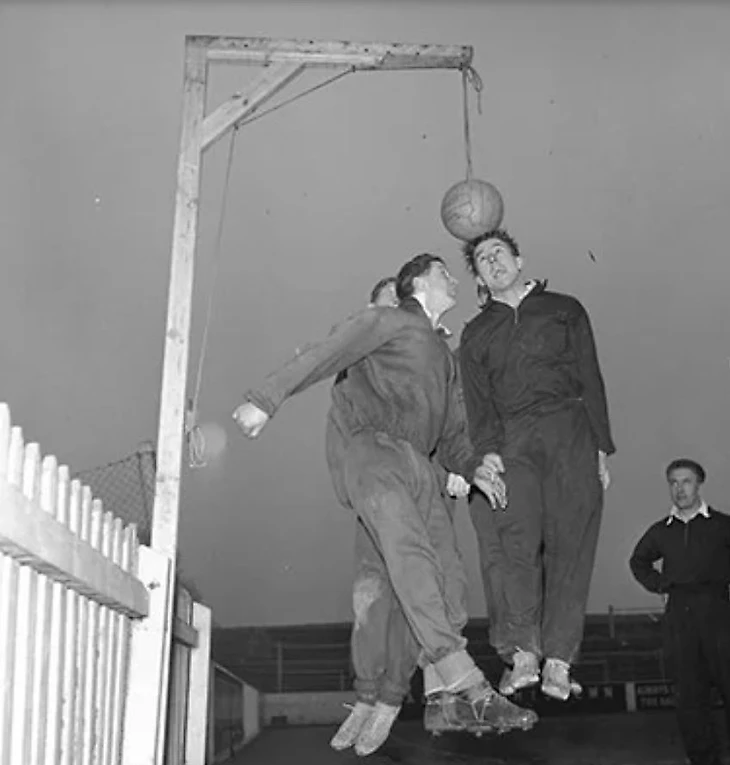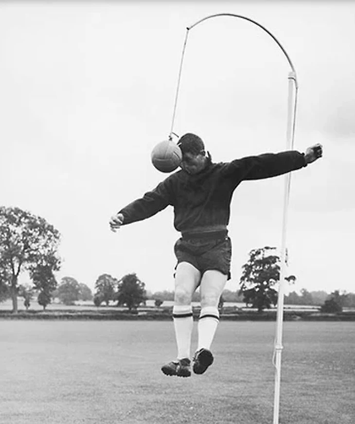 Это действительно интересный и необычный способ тренировки! В 1956 году в клубе «Лейтон Ориент» использовали мяч, подвешенный к конструкции, напоминающей виселицу, для отработки ударов головой.