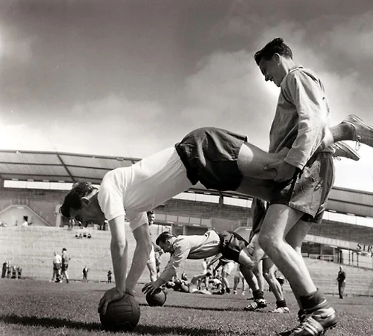 Футбол — это спорт с богатой историей, и методы тренировок в разные времена действительно сильно отличались. В прошлом тренировки часто основывались на интуиции и опыте, а не на научных подходах, как сейчас. На старых фотографиях можно увидеть, как игроки выполняют упражнения без специальных тренажеров, часто используя подручные материалы. Например, многие использовали тяжелые мячи для развития силы, а некоторые тренеры включали в занятия элементы игры, чтобы повысить мотивацию и вовлеченность.