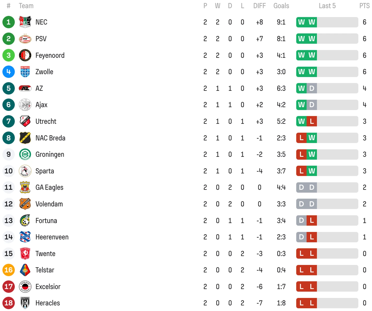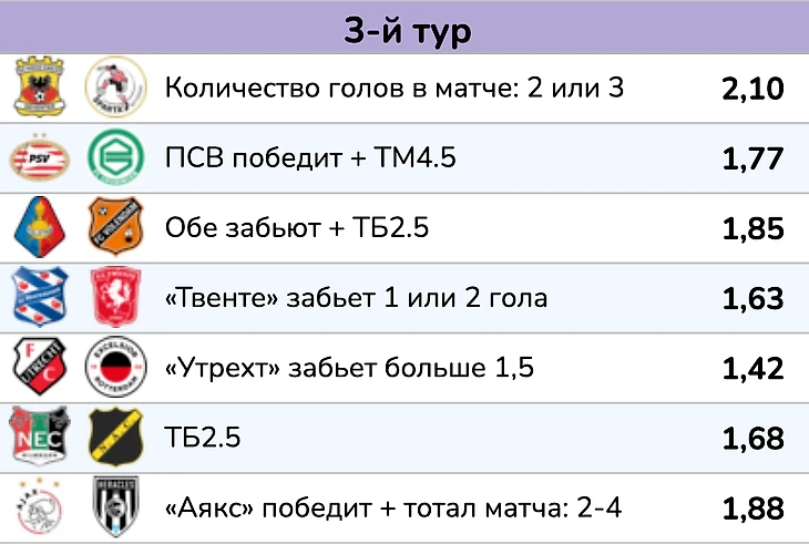Превью 3-го тура Эредивизи🇳🇱 | ПСВ победит без форвардов, в матче НЕКа снова будет «верх», «Аякс» принимает аутсайдера