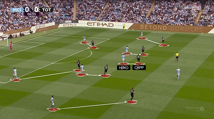 Схема и процент владения – не единственные проявления гибкости, на которые способен Франк. По ходу матчей датчанин любит переключаться между двумя режимами обороны: либо защита низким блоком, либо высокое персональное давление по всему полю. Пропорция и перекос зависят от уровня соперника. Тут на первый план вышли персоналки, они стали главной проблемой «Сити» в игре.