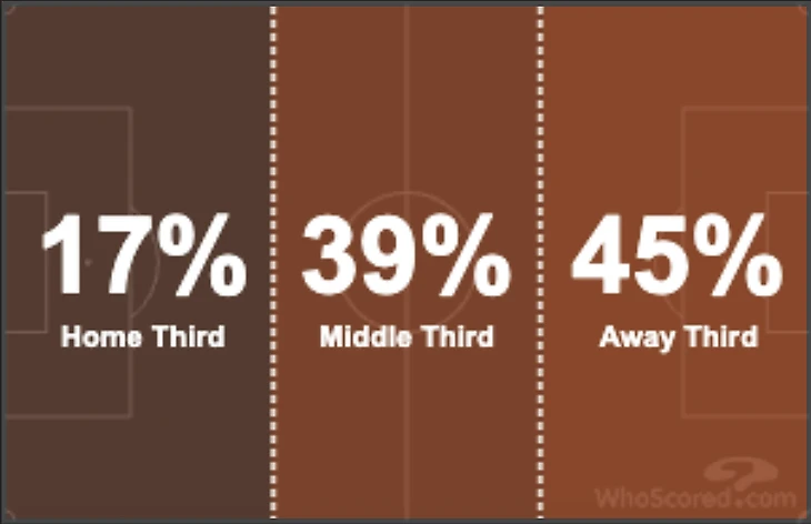 Легендарные 4:0 при Эндже Постекоглу пришли из похожего рисунка. Ранние мячи «Тоттенхэм» забил в смелой манере, но в целом придерживался такого же контратакующего подхода. С точки зрения территории – «копировать-вставить» как у Моуринью.