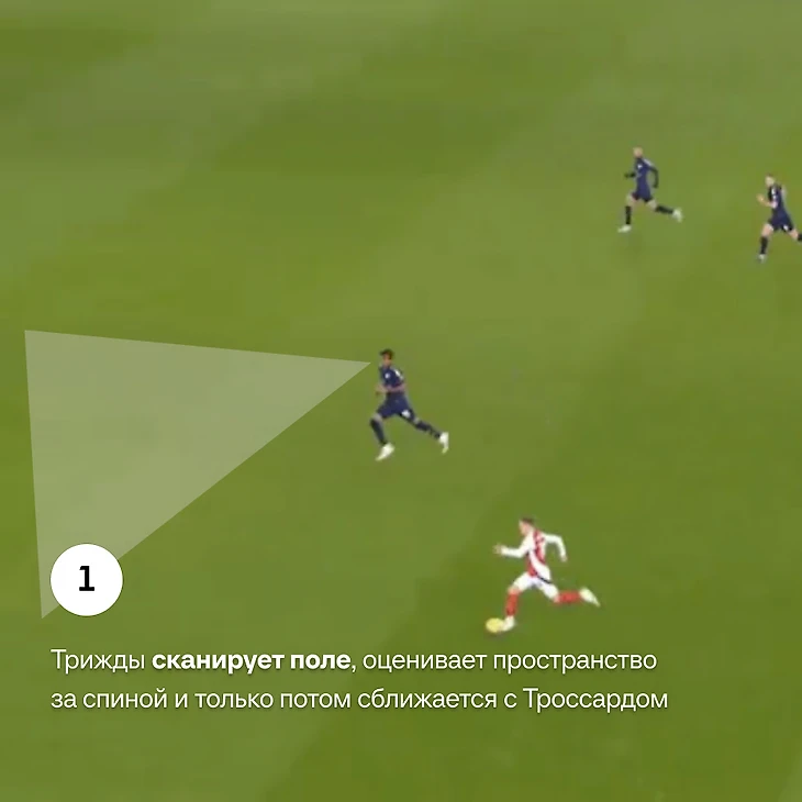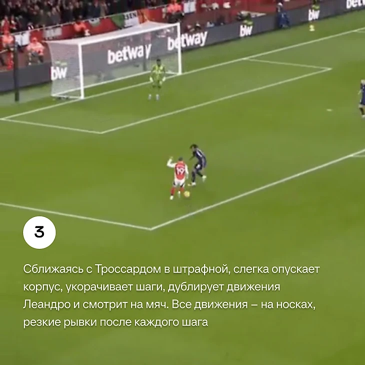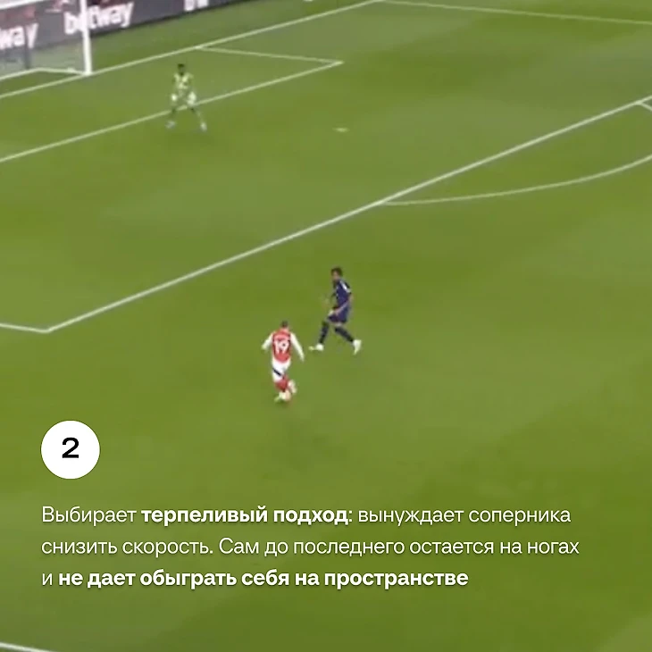 Во Франции Лени заложили качественную оборонительную базу – в дуэлях против вингеров и форвардов действует по четкой методичке. Вот пример из дебютного матча с «Арсеналом».