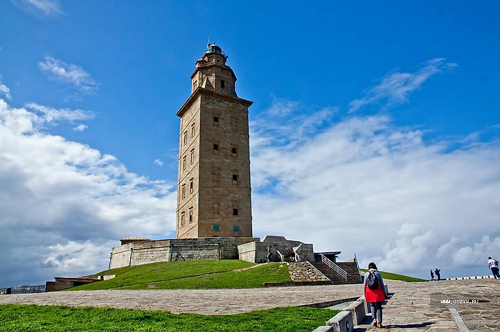 Мозаичный рисунок в нижней части футболки напоминает технику каменной кладки, использованную при создании восьмиконечной звезды у основания Башни Геркулеса.
