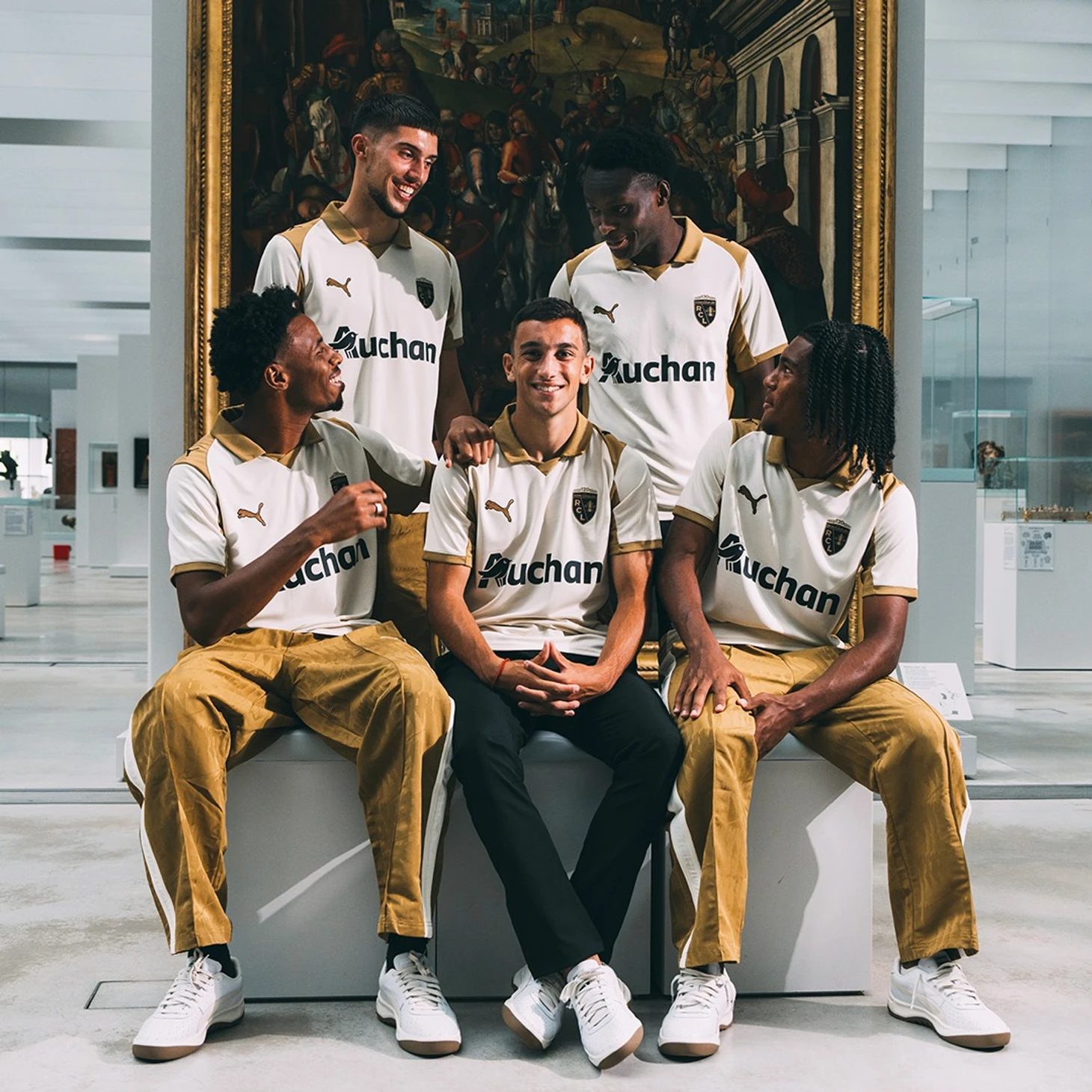 Узор на зеленых панелях вдохновлен горнодобывающим наследием города и местной архитектурой, отсылая к Площади Республики, где проводились первые матчи команды.
