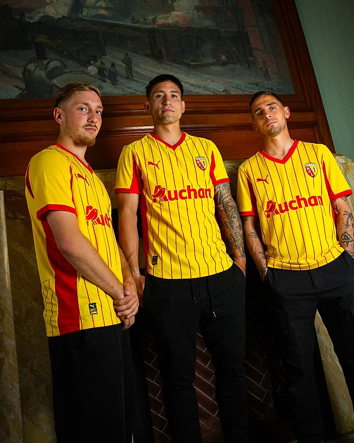 Дизайн домашней футболки «Ланса» вдохновлен классической джерси 1980-х годов и подчеркивает традиционные цвета клуба: «кровь и золото», с желтой основой и красными вертикальными полосками.