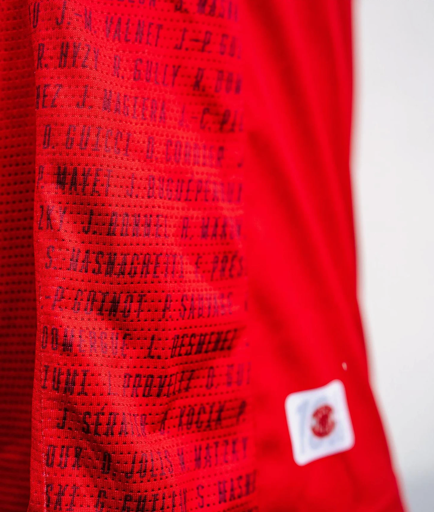 Футболка украшена оригинальной эмблемой в форме ромба, винтажным воротником и тонким намеком на двойную идентичность клуба с помощью прозвищ «Les Damiers» и «Les Merlus», напечатанных на внутренней стороне рукавов.
