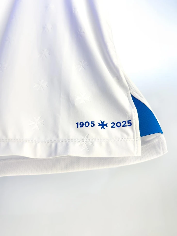Особая деталь домашней футболки – годы «1905» и «2025», разделенные мальтийским крестом, отдают дань уважения основанию клуба и его 120-летнему наследию.