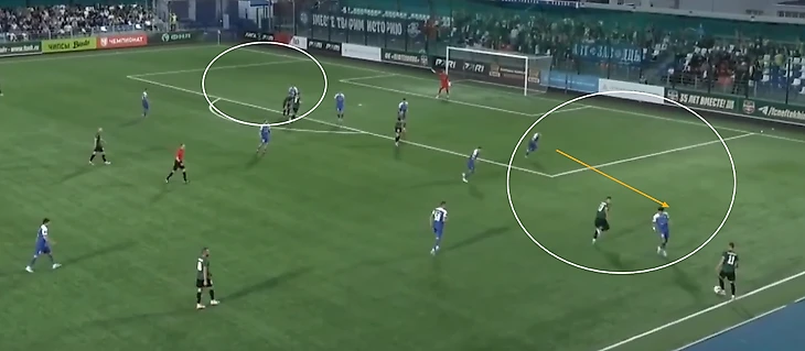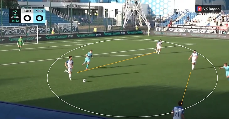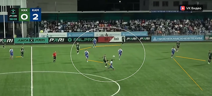 Проблемы возникают разве что с флангами – из-за достаточно активных ролей фулбеков и высоких позиций вингеров «КАМАЗ» не всегда успевает вовремя заполнять пространства, что использует соперник.