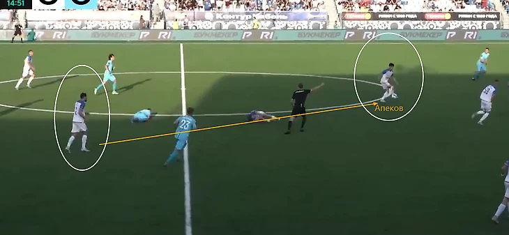 Их пара может ротироваться связкой Калистратова и Апекова (при спусках), либо же роли (при розыгрыше) могут миксоваться, передаваться между четырьмя (где-то может и прибавляться второй ЦЗ Маругин) игроками. Но одно неизменно: они образуют основную структуру с определенным количеством исполнителей в каждой стороне, что придает больше вариативности команде (все вышеуказанные исполнители разнообразны на мяче).