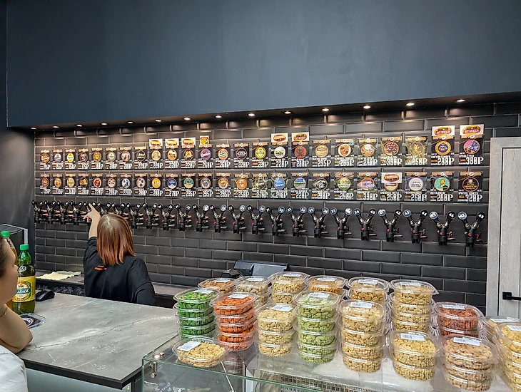 После такого жаркого и насыщенного дня хочется пропустить пару кружек пенного. Неподалеку от съемной квартиры располагается магазин «Беру два». В магазине несколько холодильников с крафтом и импортом. Цены на розлив ниже🧐