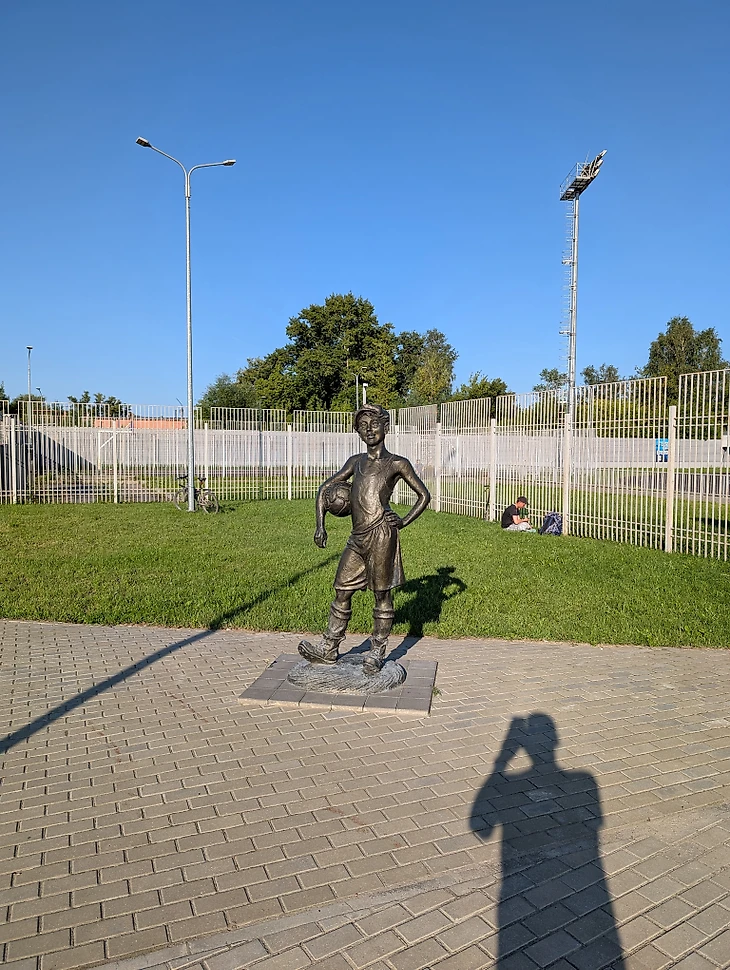 Возле стадиона расположилась скульптура «Футболист»