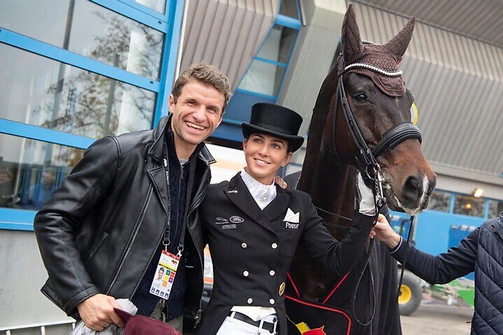 Лабрадоры Мюллера «Мики» и «Мурмель» плюс конь «Дэйв» – у немца целая ферма. Конь выглядит на поле элегантнее, чем сам Мюллер, что, учитывая его стиль, не такое уж достижение. Интересно, на ком из них Томас поскакал в «Ванкувер».