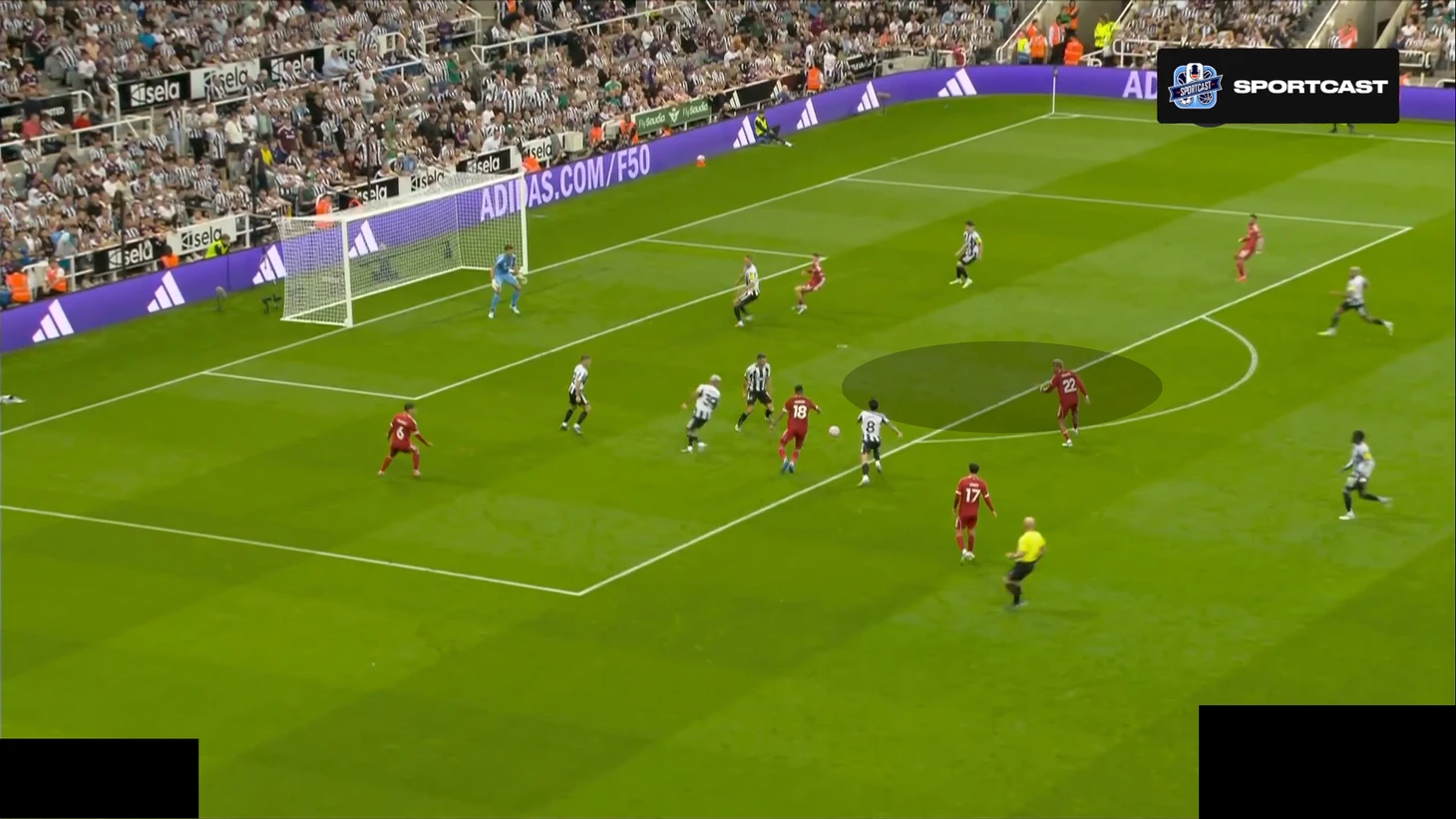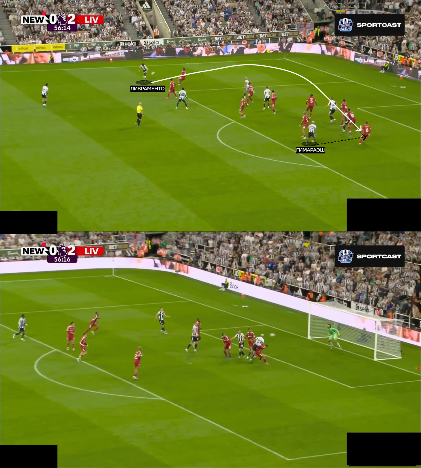 Всю игру «Ньюкасл» старался держать компактный блок в центре поля, но на последних минутах не смог сдержать финальный навал «Ливерпуля». Кьезе оставили слишком много пространства, и Федерико смог перевести мяч в полуфланг, откуда и пошел прострел.