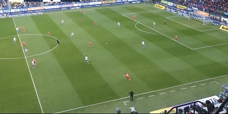 Давайте посмотрим на возникновение атаки, которая привела ко второму голу ЦСКА в ворота «Рубина».