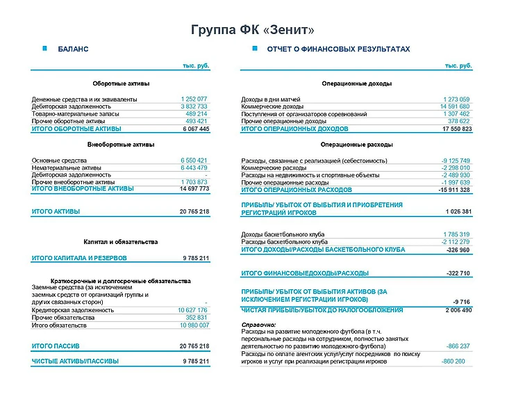 Клуб сдает финансовую отчетность по стандартам РСБУ: бухгалтерский баланс, отчеты о финансовых результатах, целевом использовании средств и аудиторское заключение, а также бюджет на следующий год: прогноз доходов и расходов и движения денежных средств.