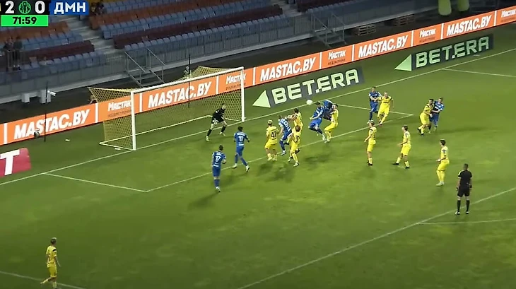 53-я минута — особенный момент для БАТЭ: стадион стоя аплодирует в память об Анатолии Капском, ушедшем на 53-м году жизни. И почти сразу после этого капитан Александр Свирепа решился на неожиданный удар внешней стороной стопы из-за штрафной: мяч по дуге влетел в ворота Коновалова — 2:0.