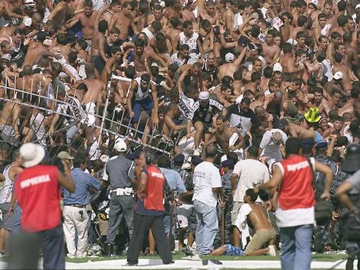 Но вторая встреча превратилась в драму: на переполненном стадионе рухнули трибуны, около 150 человек пострадали. Матч прервали.