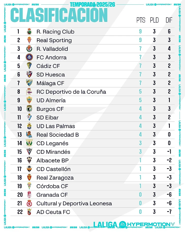 Сантандерцы лидируют в Сегунде благодаря разнице мячей: столько же очков у «Спортинга», но команда Хосе Альберто Лопеса опережает конкурента по разнице мячей (внушительные +6). Это, кстати, первая встреча между командами в истории – до этого не пересекались ни в одном турнире.
