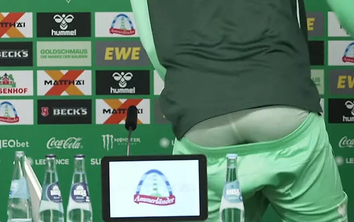 Виктор сначала сдержанно, но постепенно его как будто достали: например, с таким лицом он рассказал о желании остаться в Германии.
