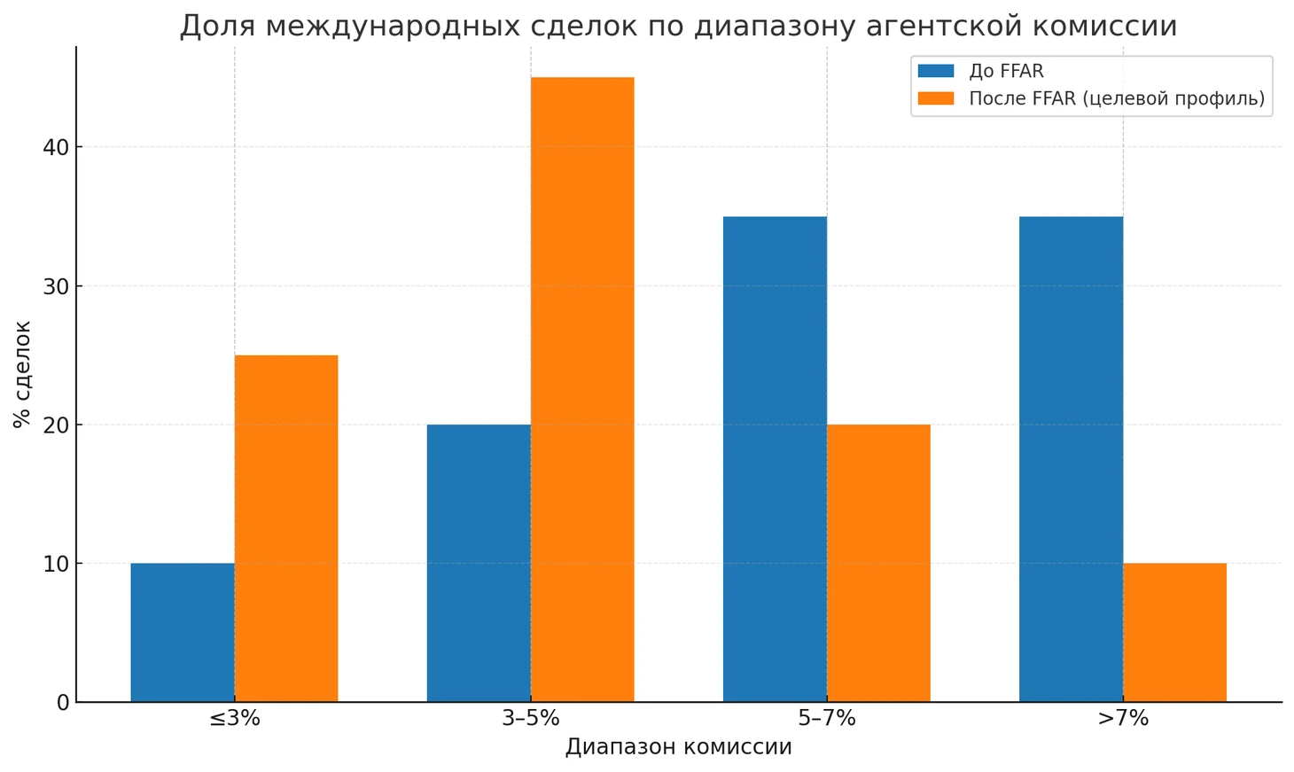 Новая модель: Введён жёсткий потолок агентского вознаграждения (service fee cap) по всему миру – впервые в истории. Согласно ст.14–15 FFAR агент не может получать больше определённого процента от суммы сделки.