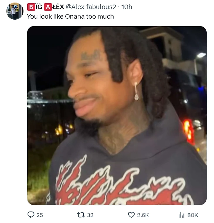 Обычно его публикации в X набирают около 500 лайков, редко больше. Теперь, когда в Адебайо узнали двойника Онана, его посты собирают не меньше 10 тысяч лайков, а какие-то и все 20 тысяч. Звезда!