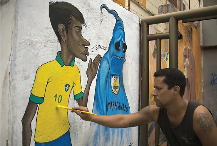 Бразилия 1950. Уличный художник в Бразилии и его композиция к чемпионату мира по футболу 2014 года – спустя десятилетия после 1950 года катастрофа на «Маракане» все еще оставалась больным вопросом.