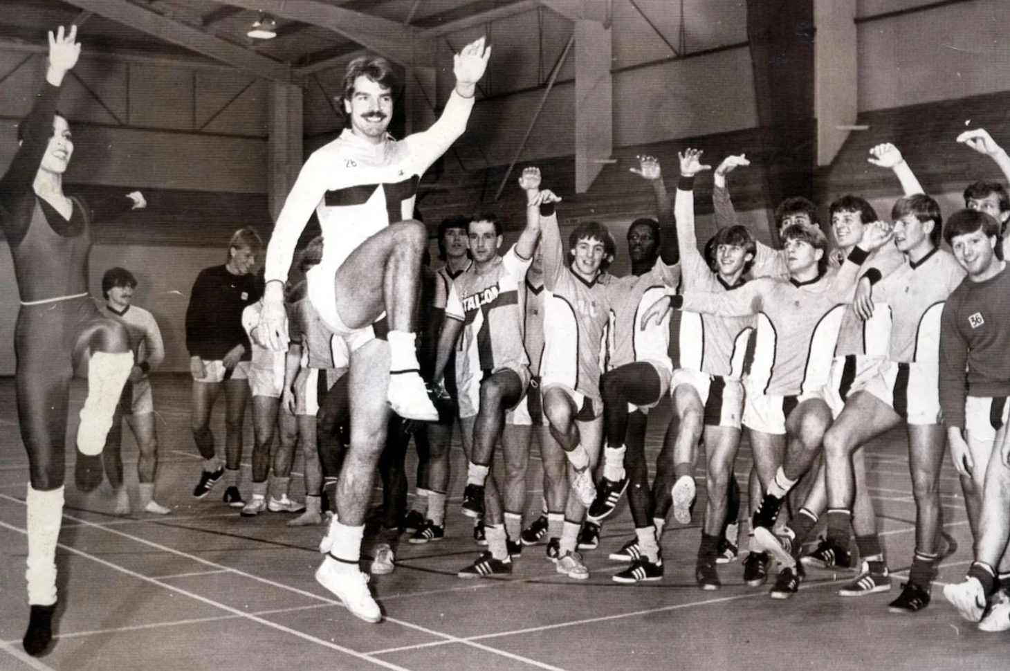Большой Сэм Эллардайс показывает свои танцевальные таланты на альтернативной тренировке «Ковентри Сити». С такими усами — любой танец выглядит солидно.