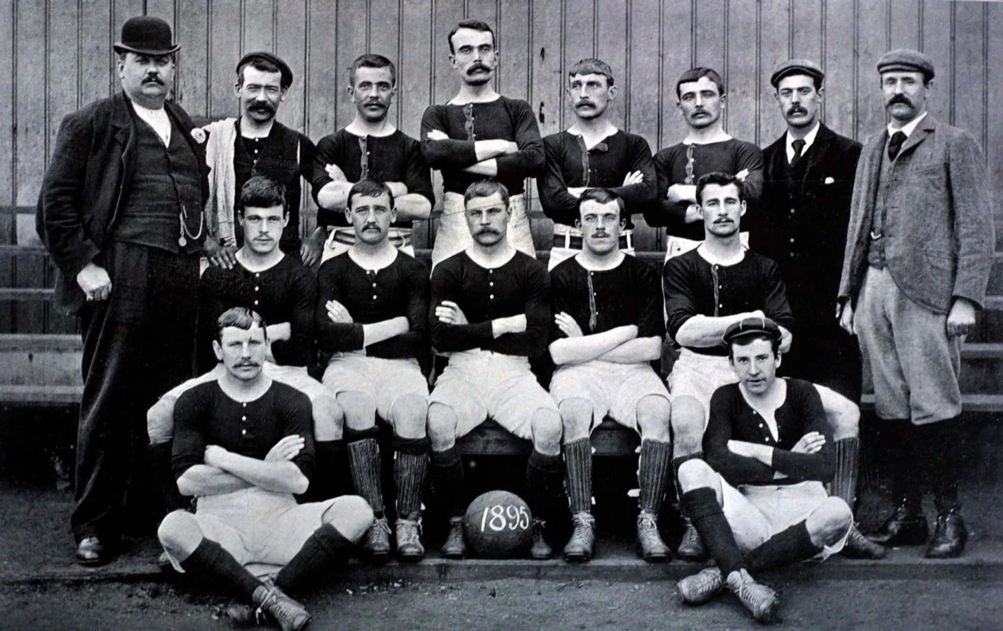 Команда «Миллуолл Роверс», созданная бравыми работягами с консервного завода Дж. Т. Мортона, гоняла мяч на острове Собачьих, что к северу от реки. На командном фото 1895 года попробуйте найти лишнего. Подсказка, это тот редкий смельчак, который осмелился прийти без усов.