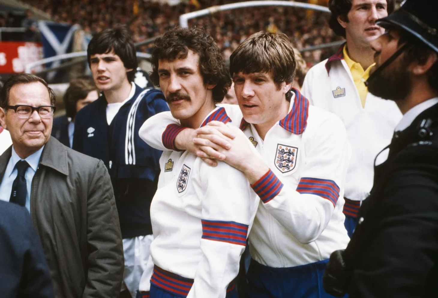 На этом фото Терри Макдермотт обнимает Эмлина Хьюза перед матчем Англии и Шотландии на «Уэмбли» в 1979 году. В команде его звали просто «Леге», и не зря: такие усы заслуживают отдельного места в футбольном зале славы