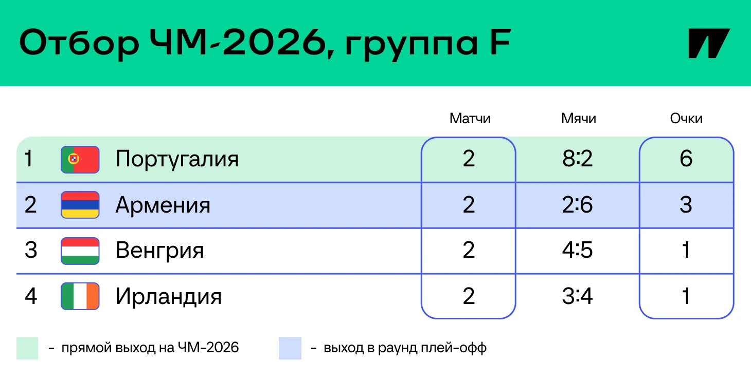 11/14 октября Португалия примет Ирландию и Венгрию, а Армения сыграет с венграми и ирландцами в гостях.
