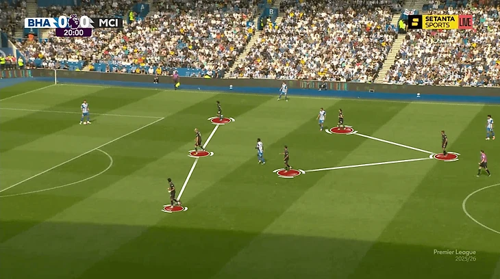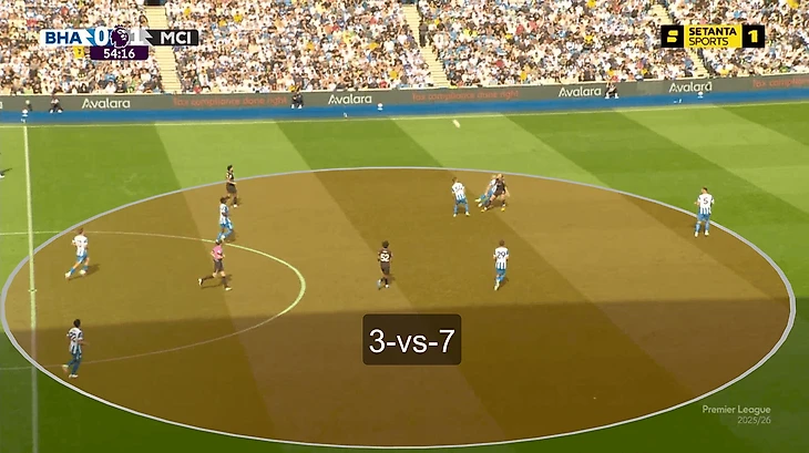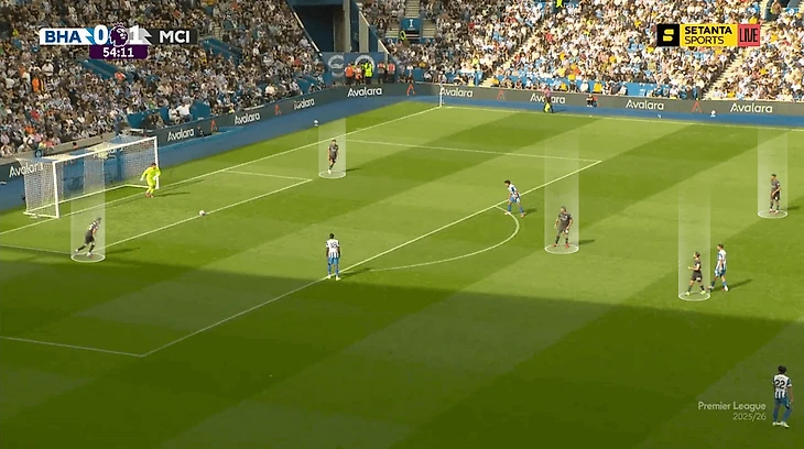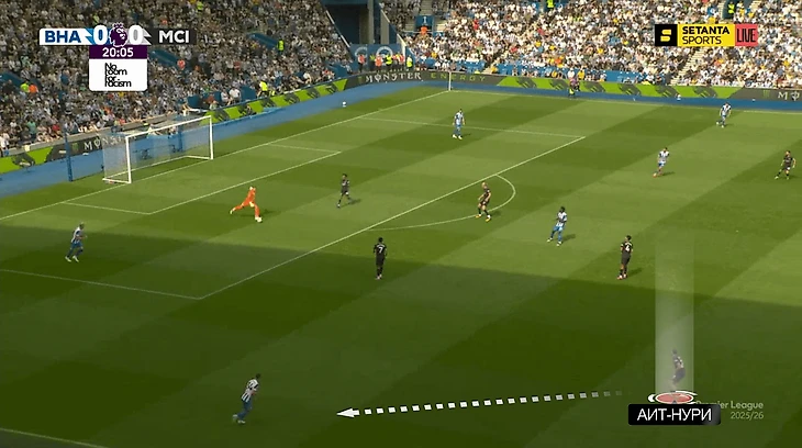 Следствие вратарского размена – плохое взаимопонимание с полевыми. После поражения от «Брайтона» Пеп отмечал, что в какой-то момент команда перешла на длинные передачи от вратаря, но при этом продолжала расставляться под короткие. Результат – нехватка игроков для борьбы за подбор.