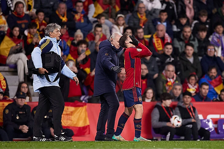 Напомним: осенью 2023 года поехал к Де ла Фуэнте, но на 26-й минуте матча с Грузией покинул поле из-за травмы на ровном месте. Даже тогда выглядело тревожно, а после выявили разрыв передней крестообразной связки и связанную с этим травму бокового мениска. Гави пришлось ложиться на операцию.