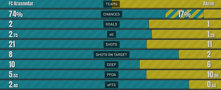 А вот что интересно – шансы на победу и ожидаемые очки. Думаю, такое подавляющее преимущество должно снимать все вопросы, но, конечно же, так это не работает.