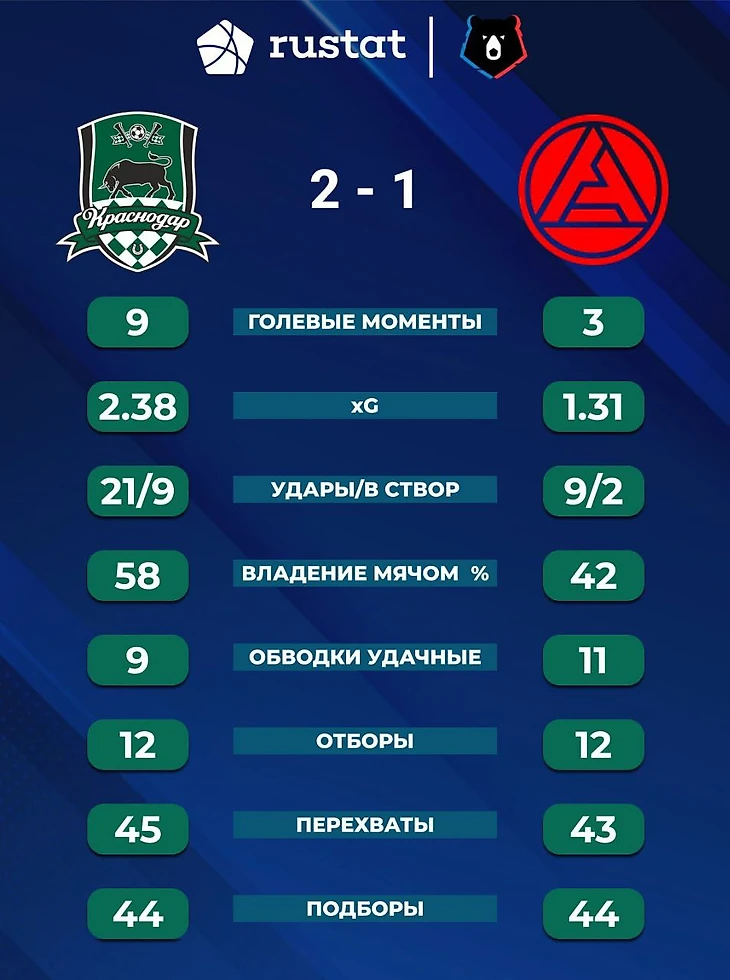 В чем не соглашусь - Акрон не играл в ярко выраженный автобус. Да, низкий блок, но не автобус, откровенно обороняться начали уже по ходу второго тайма, когда силы ушли. Я был и на прошлом матче с Акроном дома, и на этом матче. В прошлом году Акрон был никакой и действительно ничего не создал, толком на половину поля Краснодара не заходил. Сейчас Акрон был гораздо агрессивнее и быстрее и прилично напрягал Краснодар. Удивила фраза "пропустим первые 10 минут, команды вкатывались", Акрон в эти минуты точно был не хуже Краснодара и в первые минуты по ощущениям больше мячом владел.
