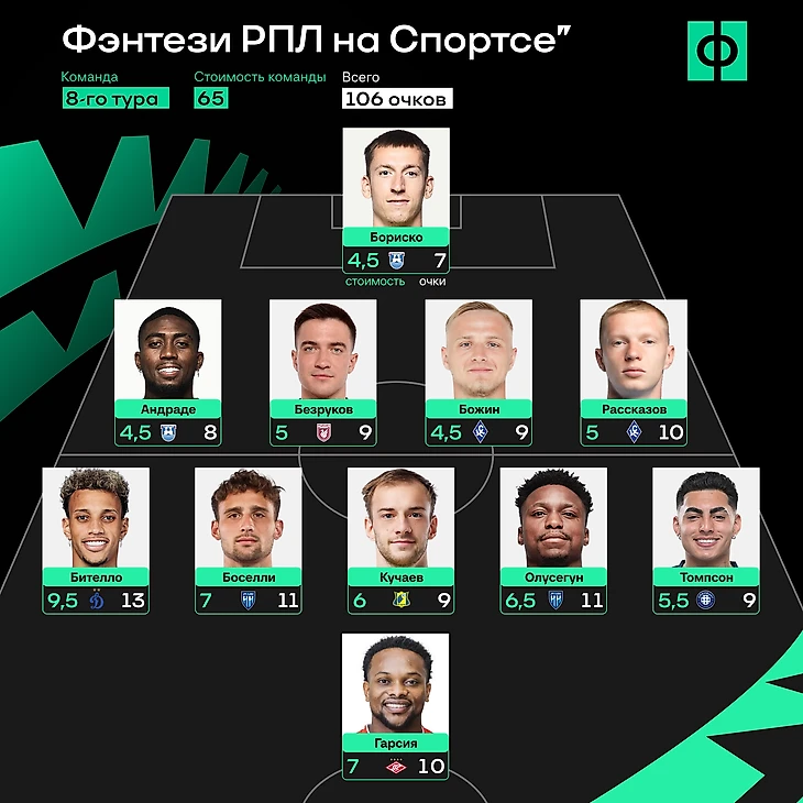 Перед вами сборная 8-го тура фэнтези-турнира по РПЛ: