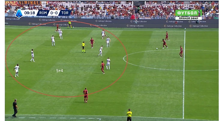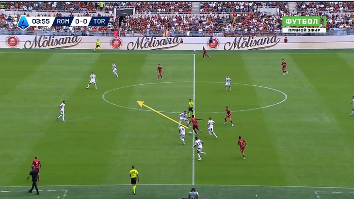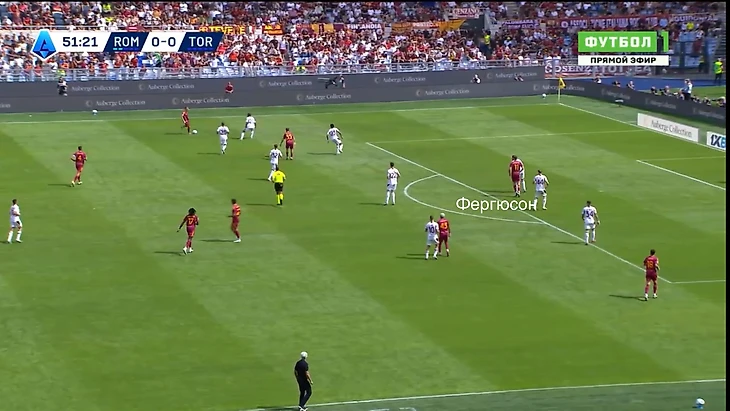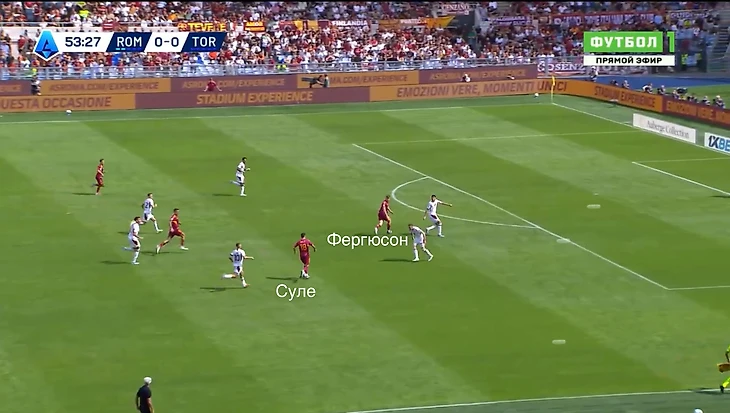 3) Были моменты, когда игрокам «Ромы» просто не хватало адресата впереди. Игрока-ориентира, который сохранит мяч и даст возможность остальным игрокам команды подняться в атаку (Ферги и Довбик в этом плане близки к элитному уровню).