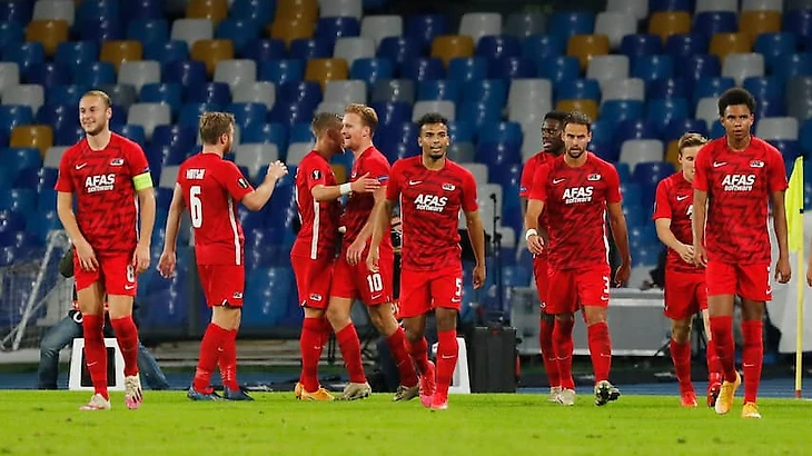 Болельщики АЗ опасались худшего, ведь их команда предстала перед итальянскими гигантами в значительно урезанном составе. Вместо этого команда, состоящая из игроков молодежной команды, одержала победу со счетом 1:0 в матче группы F. Поскольку матч проходил в основном на половине поля «Алкмара», они испытывали проблемы на протяжении всех 90 минут, но выстояли. Гол нападающего «Наполи» Виктора Осимхена был отменен из-за офсайда, Бруно Мартинс Инди предотвратил гол вингера Ирвинга Лосано, а удар форварда Дриса Мертенса прошел мимо ворот. Шансы АЗ сводились к контратакам, когда неаполитанцы теряли мяч, и победа досталась им не по игре. Героем стал полузащитник Дани де Вит, забивший единственный гол в матче на 57-й минуте. Оценивая победу, Арне Слот сказал: «Это историческая победа по стандартам АЗ. Также со всем, что к ней прилагается. Мы были счастливы, что можем играть. Мы здоровы, а ребята, которые остались, находятся в лучшей форме. Власти дали зеленый свет на матч, и мы выиграли».