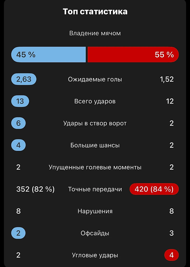 Перейдем к Юнайтеду. Главный вопрос: зачем Аморин продолжает использовать Бруну Фернандеша в полузащите? Гол Фила Фодена как раз из под него. Да, статистика не врет: 3/3 отборов, 100% верховая борьба, 83% единоборств на земле. Но тут же 15 передач в продвижение игры. Разве Каземиро тот же не может играть на этой позиции? Плохой первый тайм от МЮ - это логичный исход, ведь несмотря на прекрасный прессинг, позиционные атаки абсолютно ужасны.